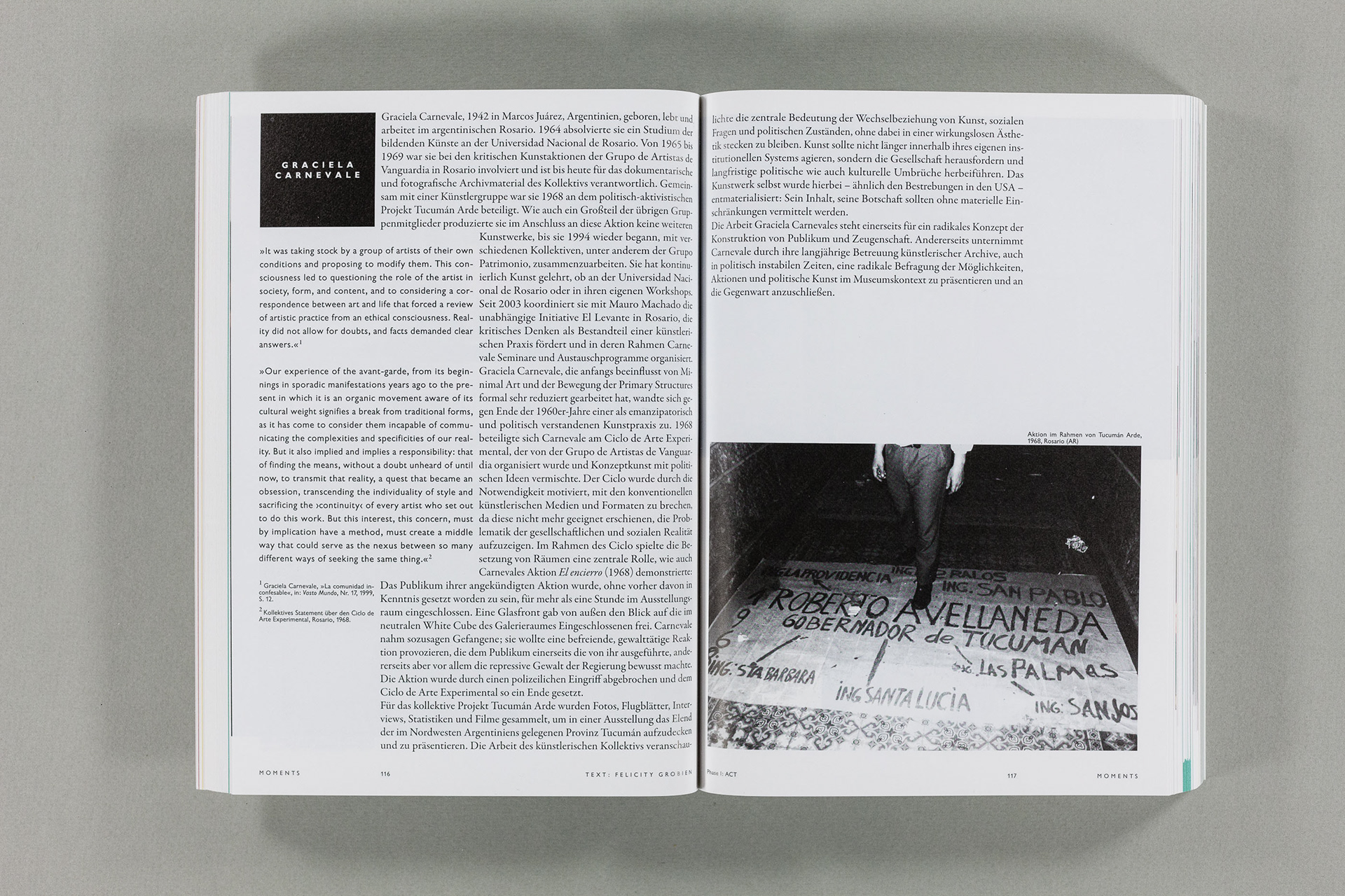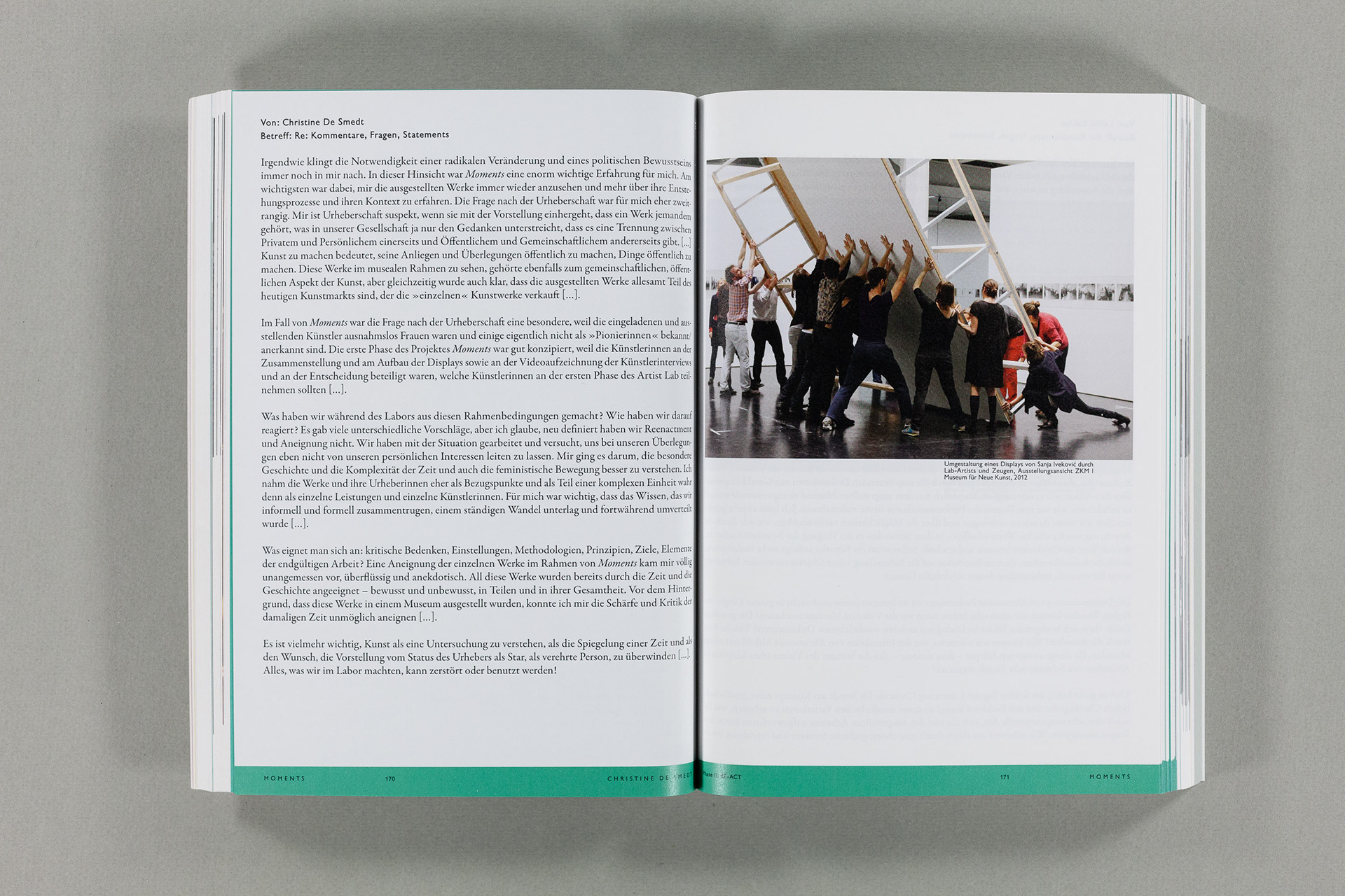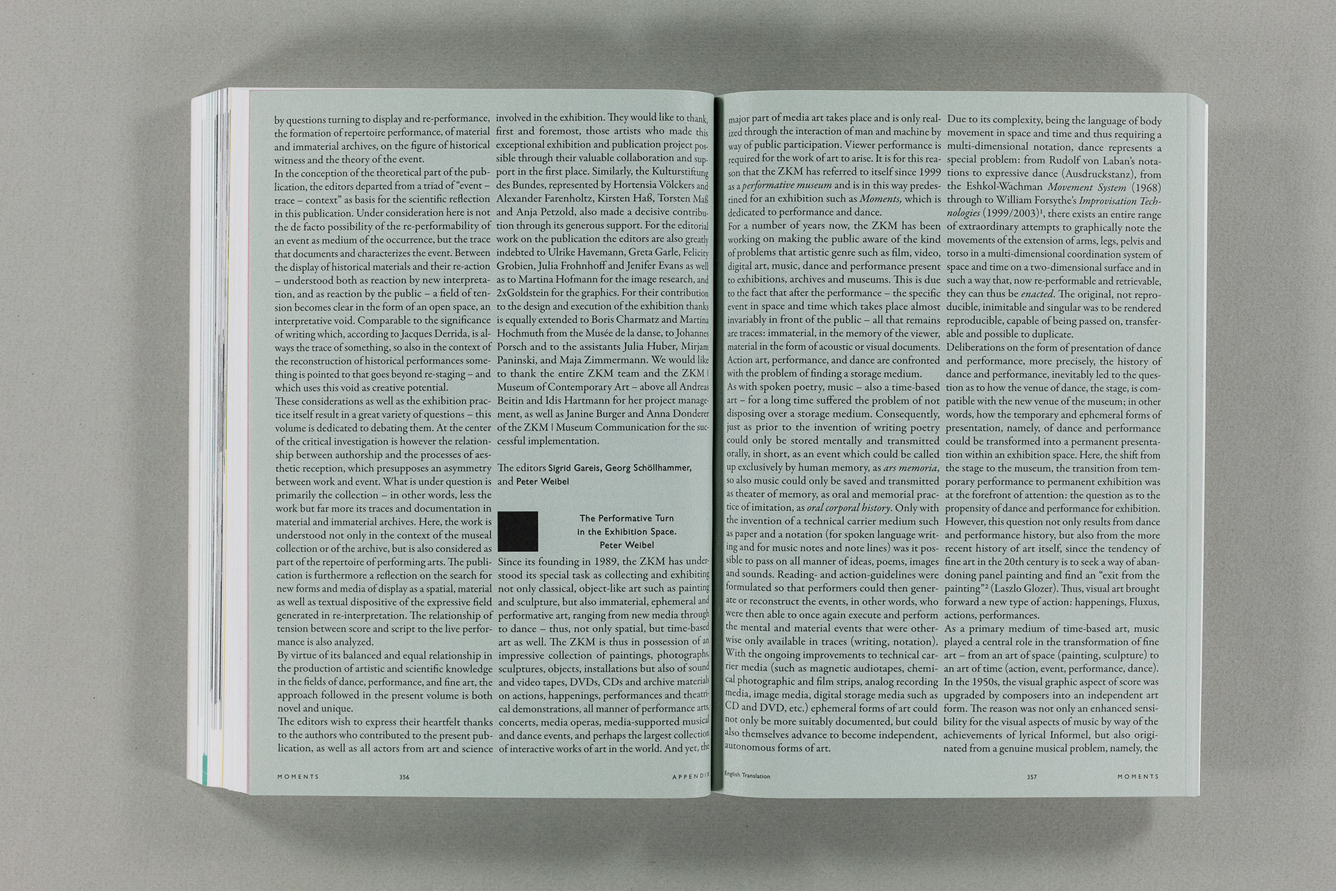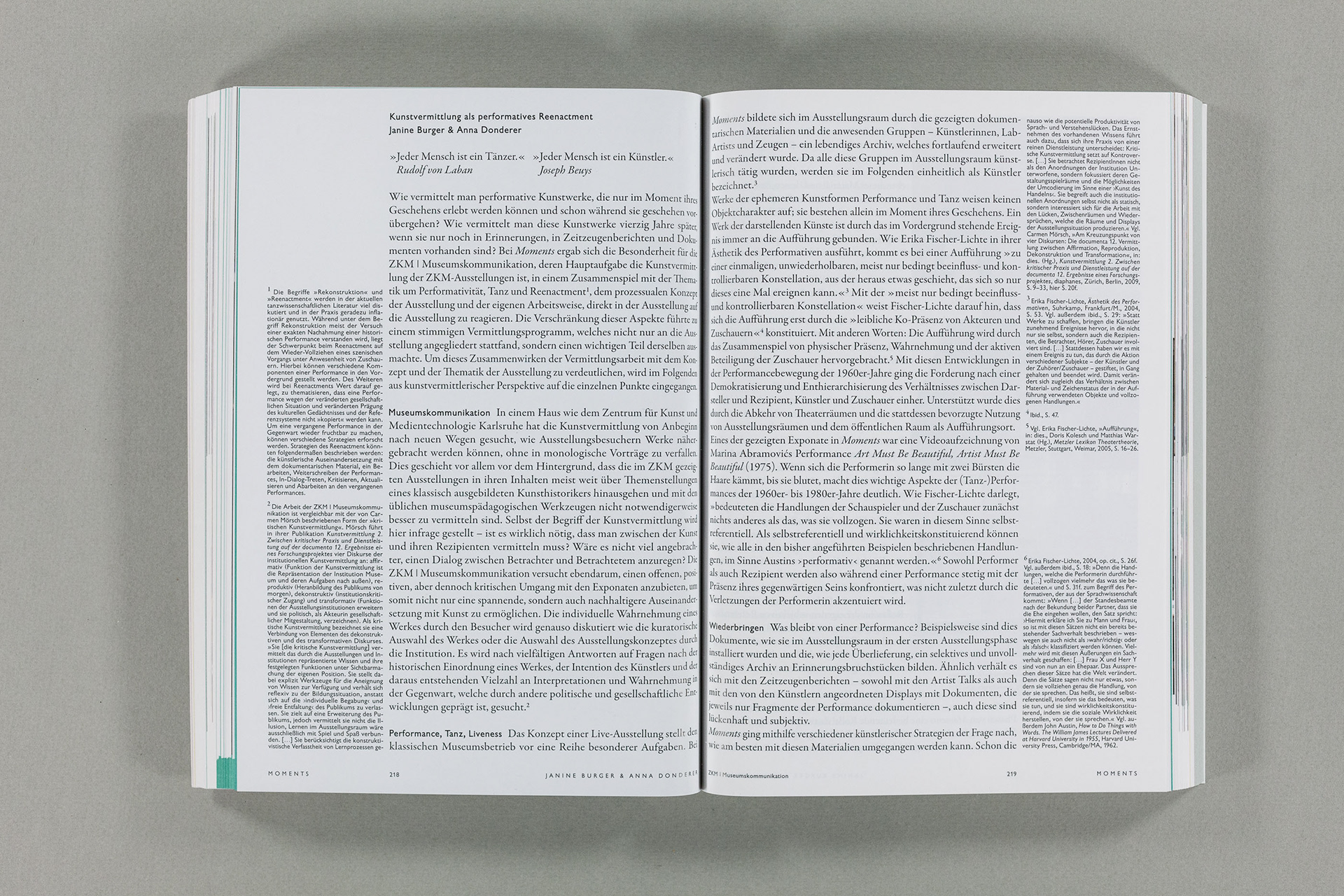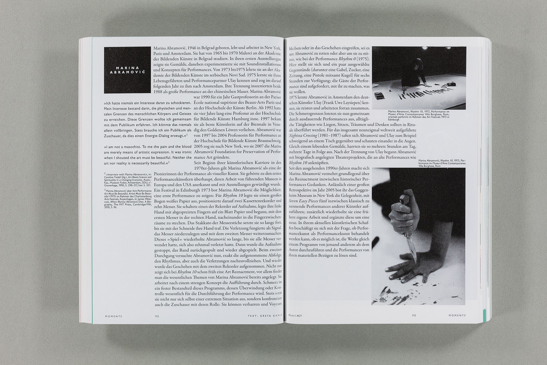 Moments. Eine Geschichte der Performance in 10 Akten / 488 Seiten / 17×24 cm / a zkm book / www.zkm.de / Gestaltung: 2xGoldstein+Fronczek