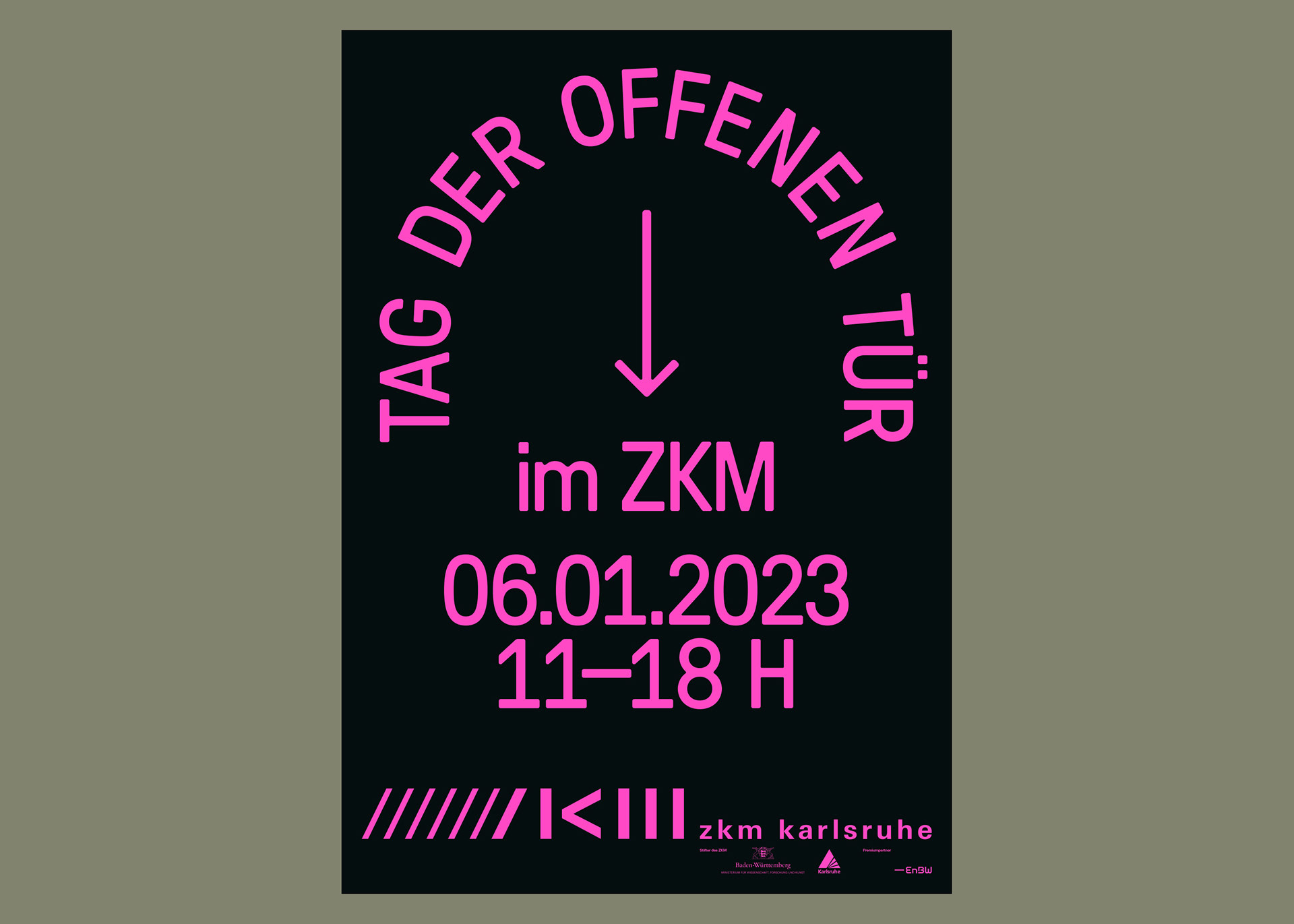 Poster design for the upcoming “Tag der offenen Tür“ [Open-door day] @ ZKM | Center for Art and Media, Karlsruhe. Font used: GT Pressura Color: Pantone 813