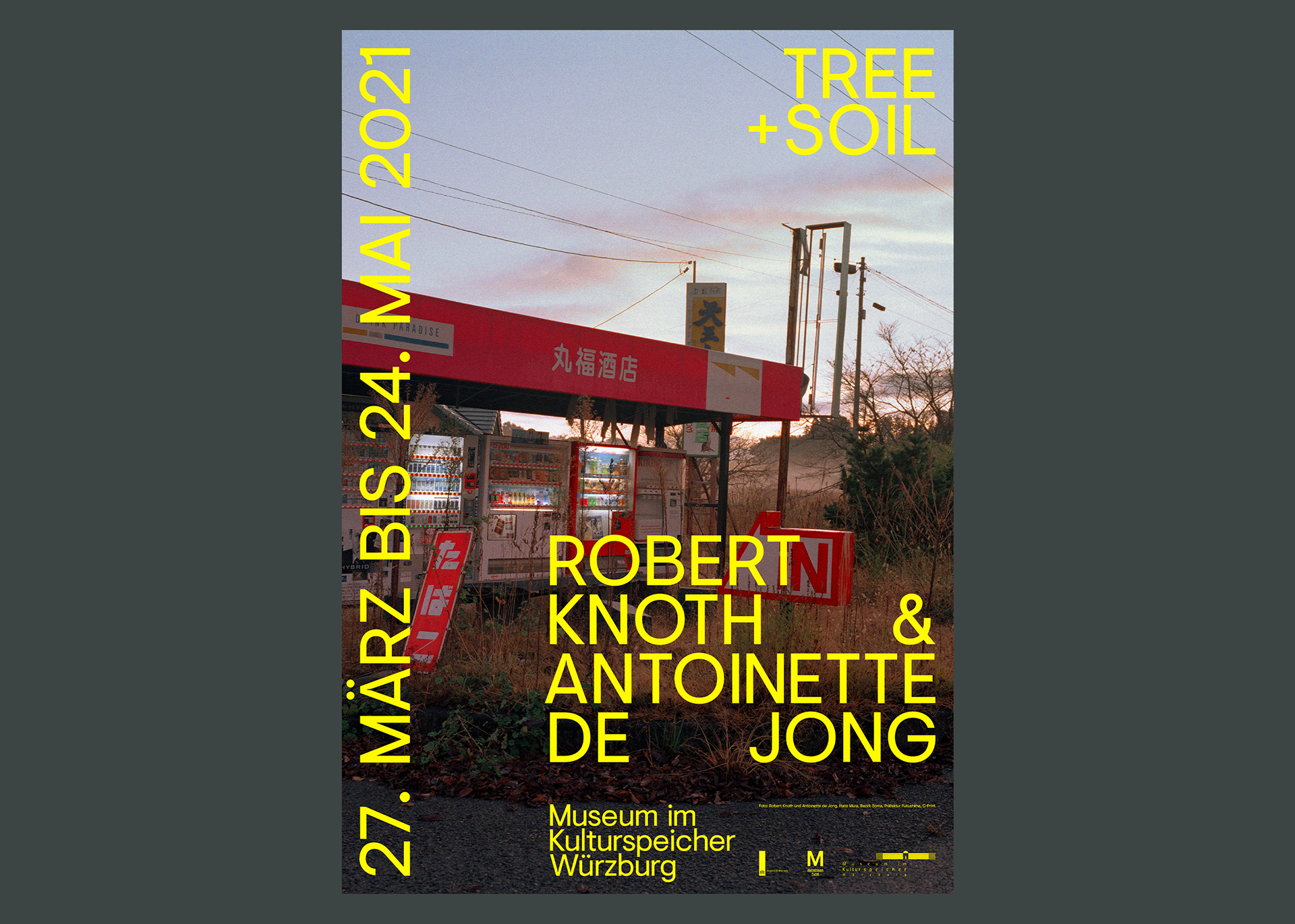 Poster design for the exhibition “Tree and Soil. Robert Knoth and Antoinette de Jong” at Museum im Kulturspeicher Würzburg. Photo: Robert Knoth and Antoinette de Jong, Iitate Mura, Soma District, Fukushima Prefecture, C-Print